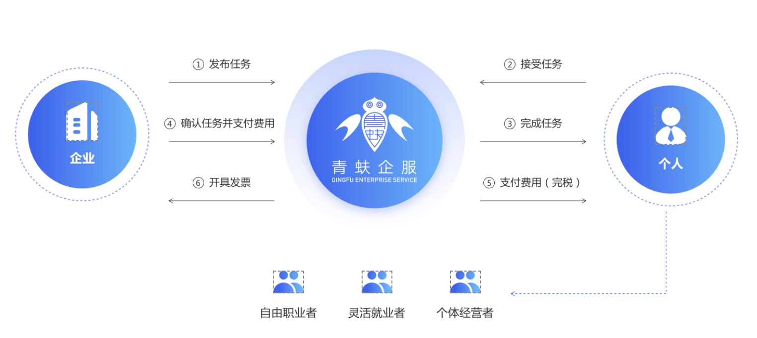 企业在给灵活就业人员进行费用结算时, 企业无法取得进项发票,灵活就业个人缴税及完税困难,灵就工可为灵活就业人员一键批量支付,并依法为个人报税及完税,并为企业真实业务合规开具增值税专用发票。